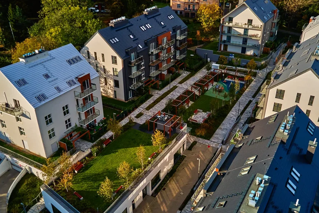 Verknappung von Bauflächen: Hohe Nachfrage bei begrenztem Angebot führt zu Verdichtung und innovativen Bauprojekten, wie Mehrfamilienhäusern oder Micro-Apartments.